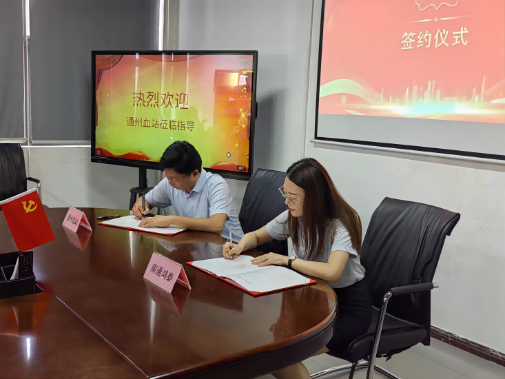 2023年9月4日,廣東鴻泰南通精機科技有限公司與南通市中心血站通州分站在公司會(huì )議室啟動(dòng)簽約儀式。通州區血站站長(cháng)黨支部書(shū)記陸建新、副站長(cháng)朱曉瑩、副站長(cháng)陳艷、血源科科長(cháng)王新明,南通鴻泰行政總監季院華、管理部主任亢玲燕、工會(huì )工作負責人瞿佳鈺共同出席了簽約儀式。